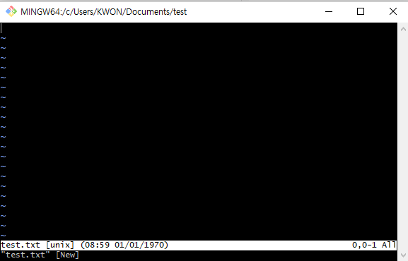 vim 편집기로 해당. txt 파일을 열었을 때 처음에는 ex모드이므로 문자가 입력되지 않을 것이다.