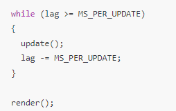 예를들어 60 FPS 로 루프를 실행하고 싶다고 가정해 보자. 이렇게 하면 약 16 ms의 시간이 주어진다. 만약 이 시간 안에 위의 3가지 작업을 모두 마친다면 16 ms에 도달할 때 까지 루프는 잠깐 대기하면 된다. 아래는 예제 코드이다.