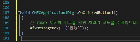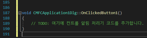 4.멤버 함수가 프로젝트Dlg.cpp 에 생성됨을 확인