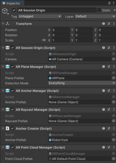 여기서 Anchor Creator 에 프리팹을 적용하면 AR 화면상에 물체가 생성된다.