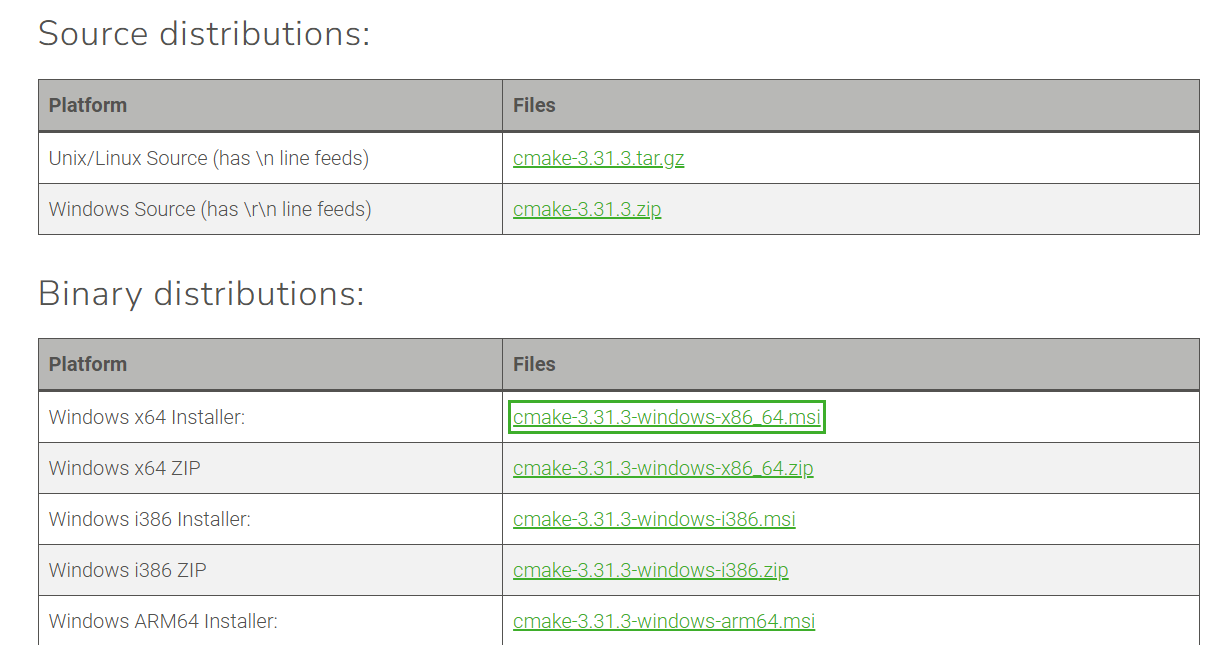 아래의 링크에 들어가서 OS에 맞는 CMake 설치한다.