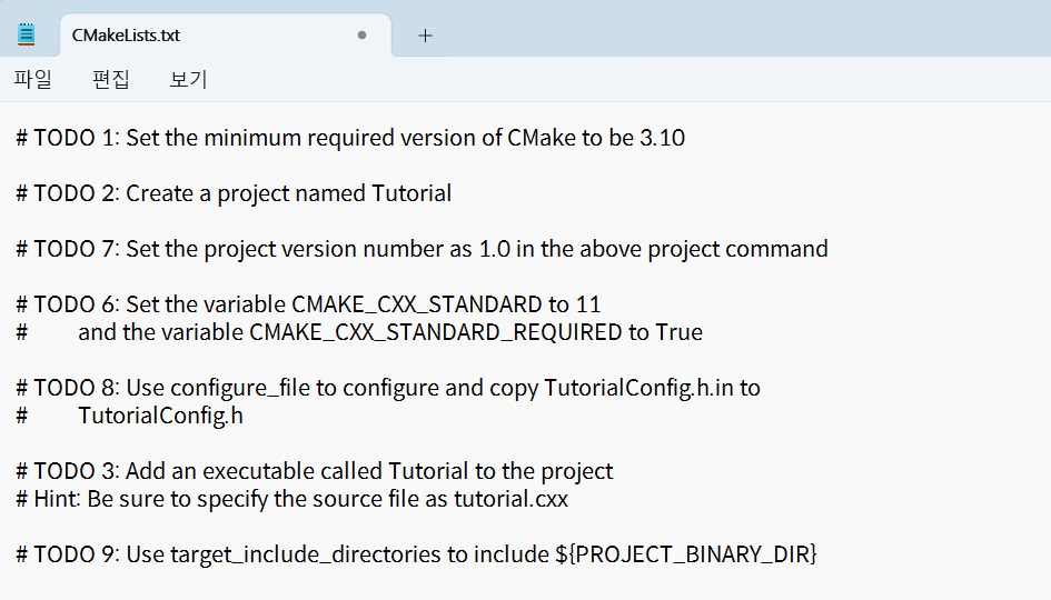 CMake 측에서 고맙게도 해당 텍스트 파일에 무엇을 입력해야하는지 주석을 남겨 주었다.