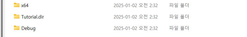 # 빌드 완료 후, 연습 1 처럼 Debug 디렉토리의 Tutorial 실행파일을 열어준다.