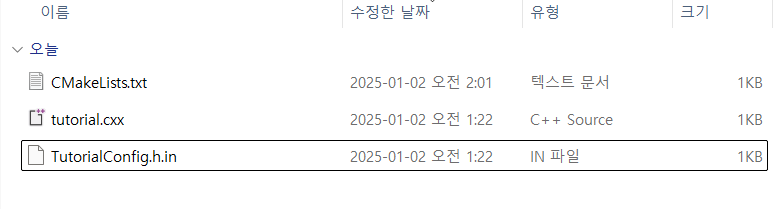 | [CMake 공부] CMake 튜토리얼 공부 (4) | 2025.01.02 |