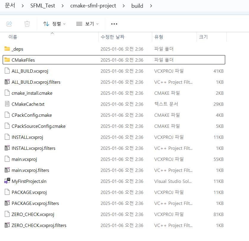build 폴더 내에 Visual Studio 프로젝트가 생성된 것을 볼 수 있다.