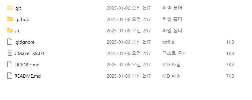 생성된 폴더에 들어가면 아래 이미지처럼 배치되어 있다.