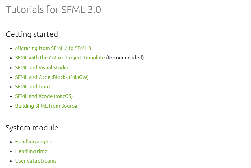 링크를 타고 이동하면 SFML 3.0의 튜토리얼 페이지로 이동되었을 것이다.