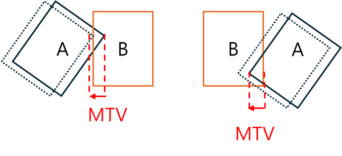 여기서 MTV는 겹쳐진 도형을 겹쳐지지 않은 상태가 되기 위한 최소한의 벡터를 말한다.