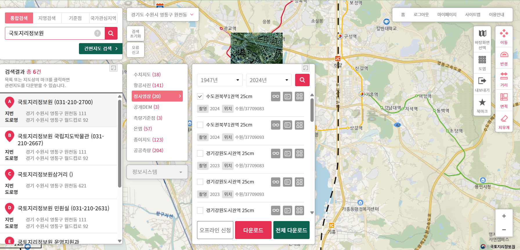 위성영상과 고도데이터는 국토정보플랫폼에서 다운로드했다. 여기서 지형 정보를 다운로드하려면 조금 복잡한 인증절차가 있으니 반드시 해당 방법을 통해서 지형정보를 가져오지 않아도 된다.
